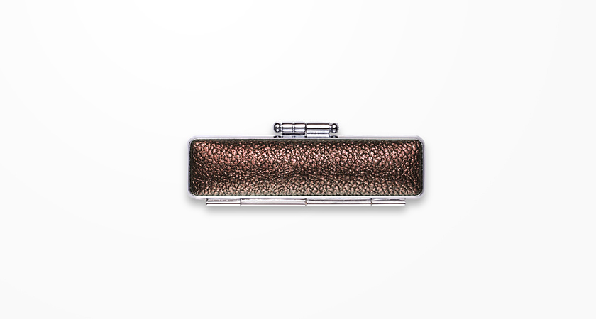 セットとなる印鑑ケースは、エンボス加工されたレザーにオリジナルのパール加工を施した艶のあるエレガントな印鑑ケースです。 落ち着いた光沢感が「上品」で「オシャレ」な一面を演出する、非常に洗練された魅力的な印鑑ケースです。